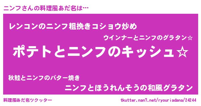 | ヘコむあだ名 | 『ニンっぺ』『つくし』『ニンフ(笑)』 |