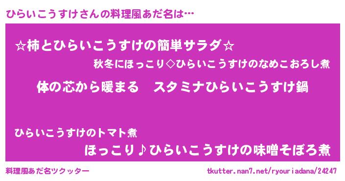 | 欧米人風あだ名 | 『ひらいこうすけクリステル』 |