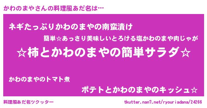| ヒーロー風カッコイイあだ名 | 『スーパーカワノマヤ』『炎刃騎士カワ』 |