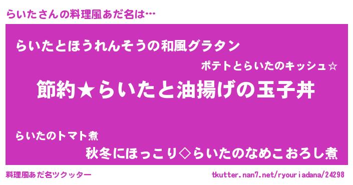 | ヘコむあだ名 | 『らいふぇ~』『らいお』『つくし』 |