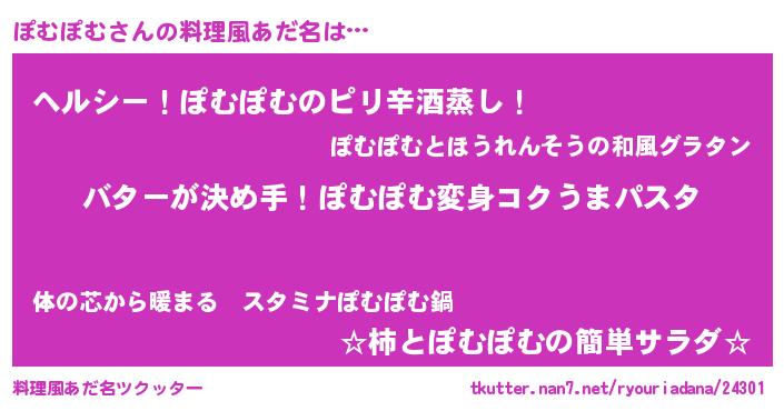 | 女子向けラノベタイトル風あだ名 | 『ぽむぽむ恋絵巻』『闇のぽむぽむ』 |