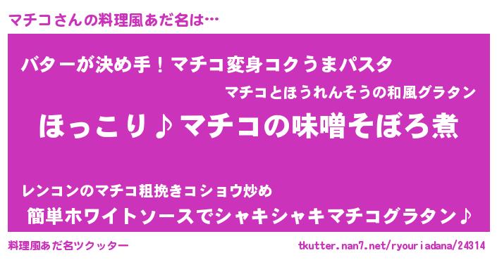 | ピコ太郎風あだ名 | 『マコ太郎』『ママ太郎』『マチ史郎』 |