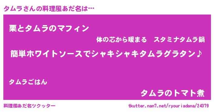 | 男性向けラノベタイトル風あだ名 | 『タムラの嫁は女の子じゃないと思った?』 |