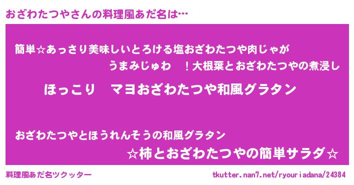 | 男性向けラノベタイトル風あだ名 | 『この素晴らしい世界におざわたつやを!』 |