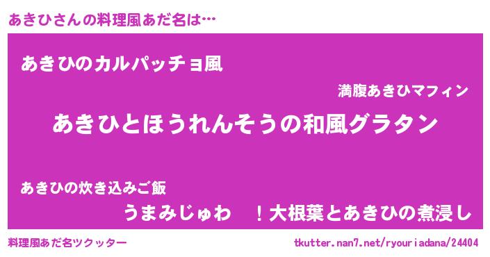 | ピコ太郎風あだ名 | 『ピア五郎』『ピコア郎』『アキ三郎』 |
