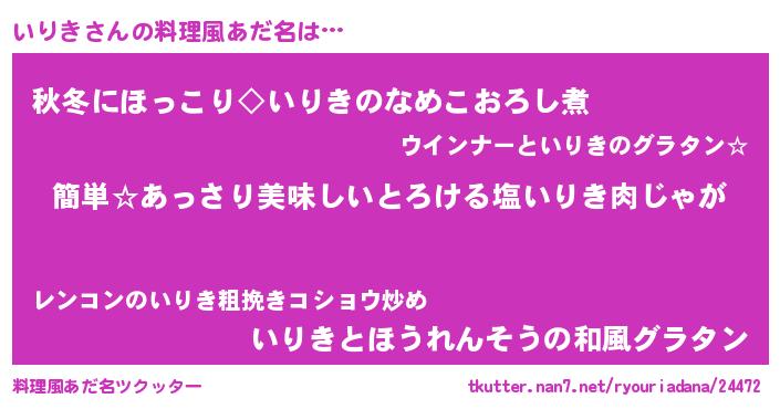 | 意味不明あだ名 | 『永久保存いりき』『なめこ科いりき属』 |