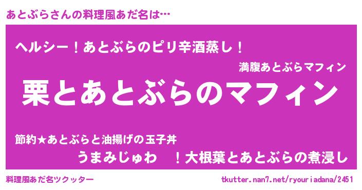 | 男性向けラノベタイトル風あだ名 | 『はたらくあとぶらさま!』 |