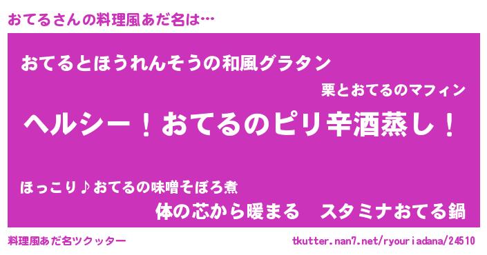 | 男性向けラノベタイトル風あだ名 | 『Re:おてるから始める異世界生活』 |