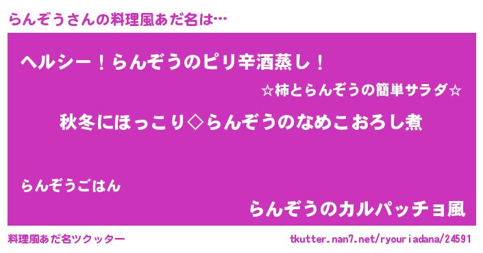 | 男性向けラノベタイトル風あだ名 | 『らんぞうに滅ぼされるだけの簡単なお仕事です』 |
