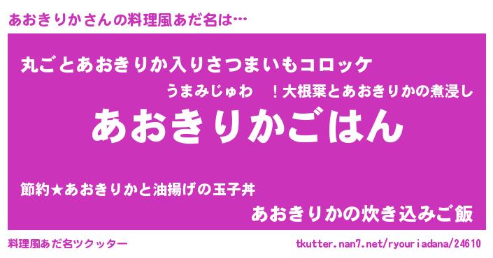 | 恥ずかしいあだ名 | 『あおっちょ』『プリティーあおきりか』 |