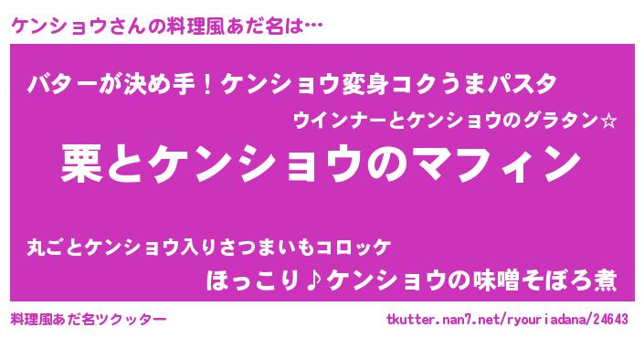 | ヘコむあだ名 | 『ケンにゅー』『豆乳』『ケン太郎』 |