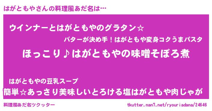 | ファンタジー風あだ名 | 『ハガフェル』『エターナルハガトモヤー』 |