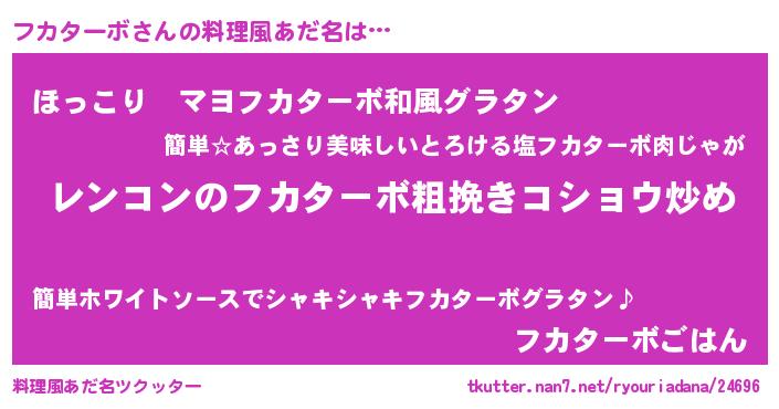 | 意味不明あだ名 | 『自称フカターボ』『永久保存フカターボ』 |