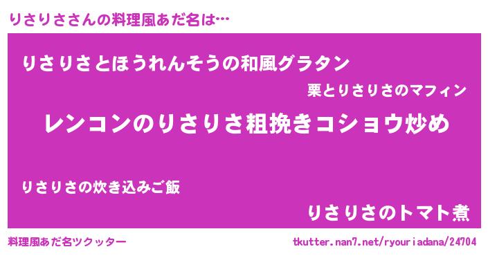 | 意味不明あだ名 | 『自称りさりさ』『もやし科りさりさ属』 |