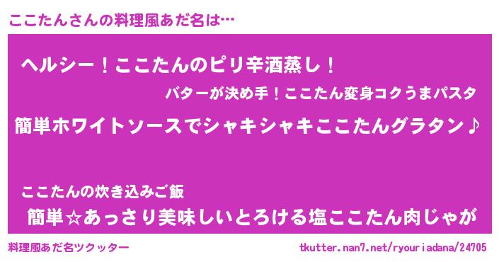 | 男性向けラノベタイトル風あだ名 | 『ここたんの嫁は女の子じゃないと思った?』 |