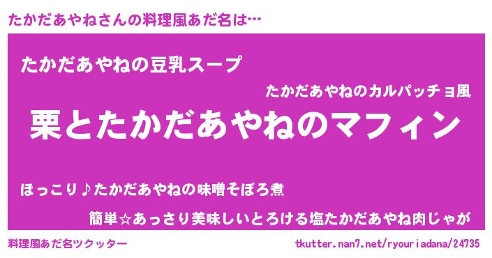 | ヘコむあだ名 | 『たか太郎』『たかだあやね(笑)』 |