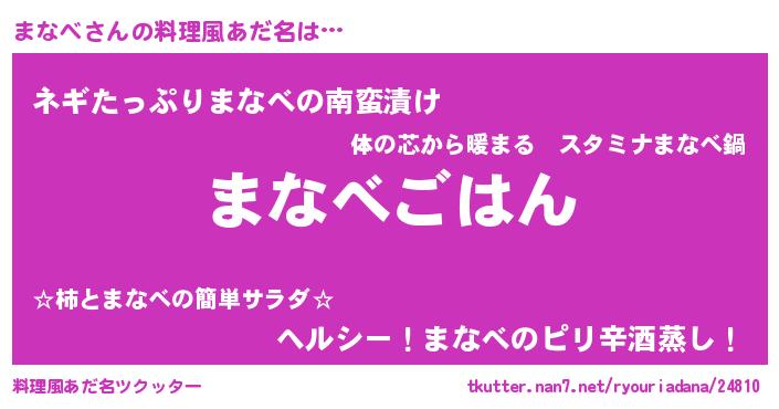 | ヘコむあだ名 | 『まなふぇ~』『レバニラ』『まなを』 |