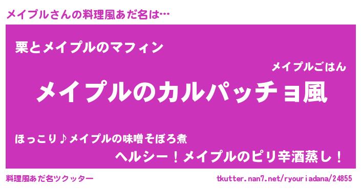 | 男性向けラノベタイトル風あだ名 | 『魔弾の王とメイプル』『メイプルの憂鬱』 |