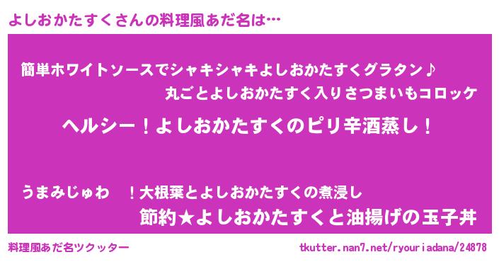| 男性向けラノベタイトル風あだ名 | 『Re:よしおかたすくから始める異世界生活』 |