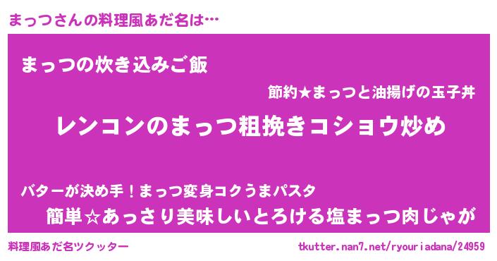 | 胡散臭い通販商品みたいなあだ名 | 『ガンによく効くアガリクス…その名も「まっつ」』 |