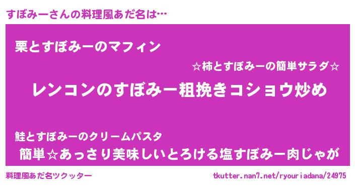 | 胡散臭い通販商品みたいなあだ名 | 『ガンによく効くアガリクス…その名も「すぼみー」』 |