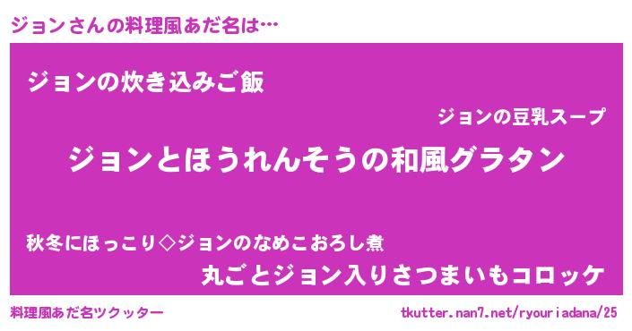 | 女子向けラノベタイトル風あだ名 | 『ジョンの玉の輿計画!』 |