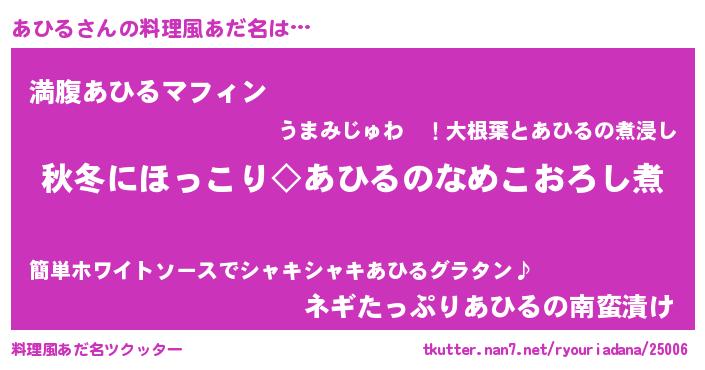 | ヘコむあだ名 | 『あひる(笑)』『あひにゅー』 |