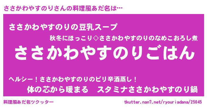 | 意味不明あだ名 | 『しいたけ科ささかわやすのり属』 |