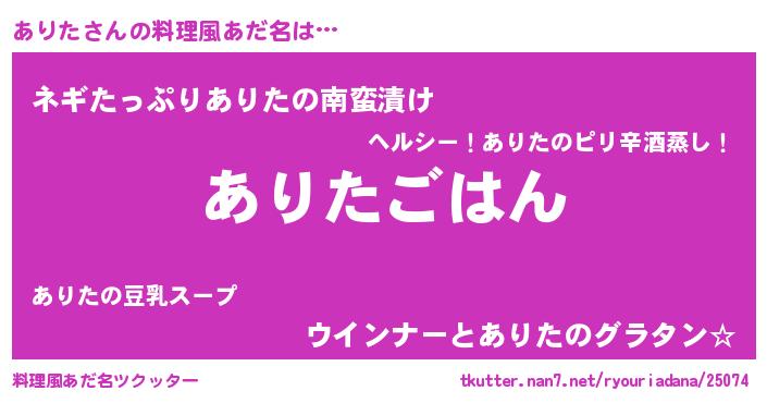 | 意味不明あだ名 | 『なめこ科ありた属』『ペロリンありた』 |