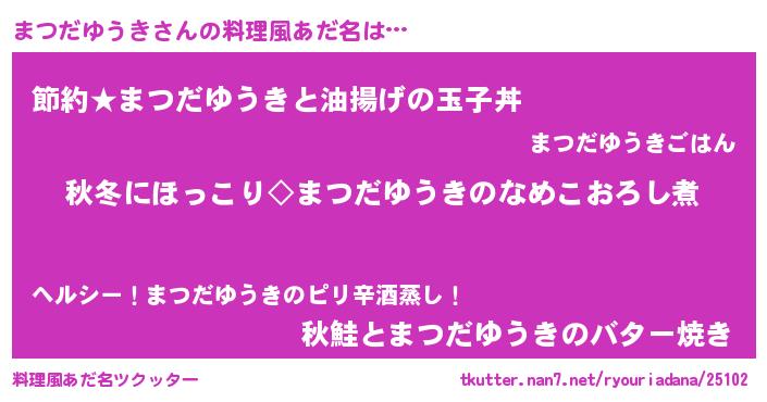 | 恥ずかしいあだ名 | 『プリティーまつだゆうき』『まつちん』 |
