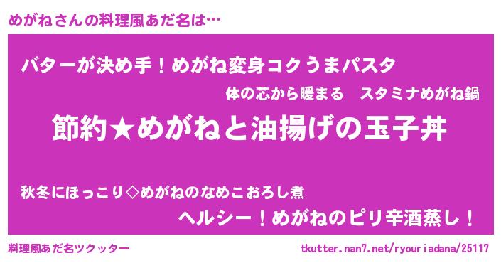 | ヘコむあだ名 | 『めがもー』『豆乳』『めがを』 |