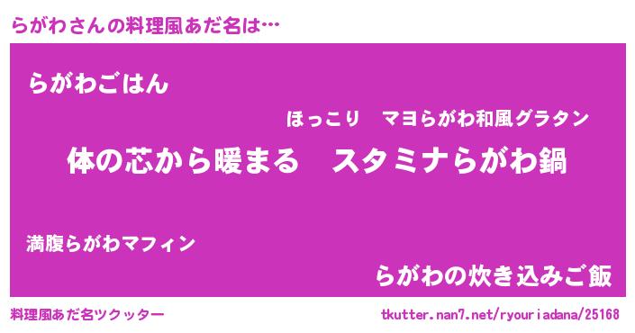 | 意味不明あだ名 | 『らがわフォーエバー』『永久保存らがわ』 |