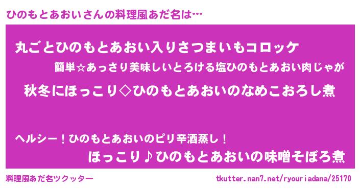 | 意味不明あだ名 | 『住所不定無職ひのもとあおい(62歳)』 |