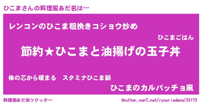 | ピコ太郎風あだ名 | 『ヒコ八郎』『ピヒ六郎』『ヒヒ太郎』 |