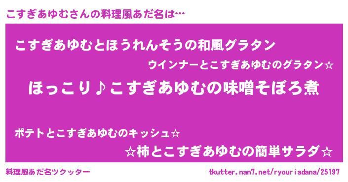 | 男性向けラノベタイトル風あだ名 | 『こすぎあゆむの憂鬱』 |