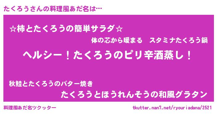 | ヘコむあだ名 | 『レバニラ』『たくろう(苦笑)』 |
