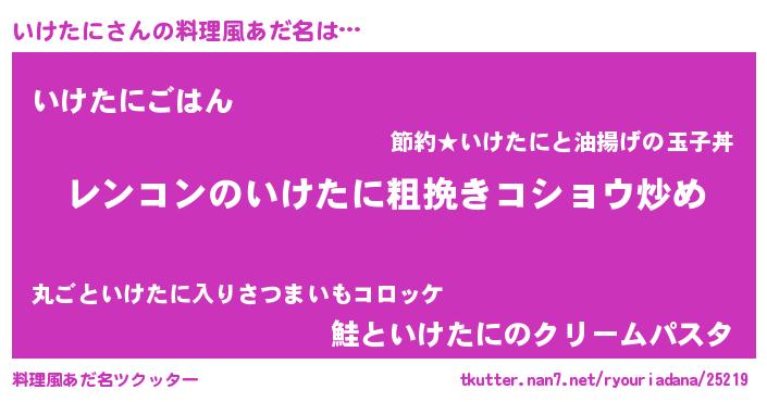 | 意味不明あだ名 | 『自称いけたに』『めかぶ科いけたに属』 |