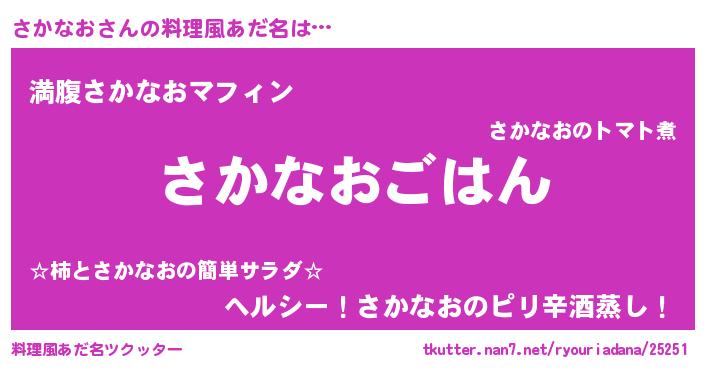 | 男性向けラノベタイトル風あだ名 | 『転生したらさかなおだった件』 |