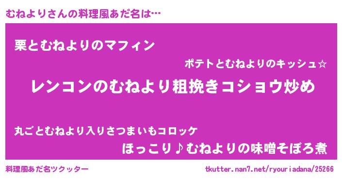 | 意味不明あだ名 | 『自称むねより』『ペロリンむねより』 |