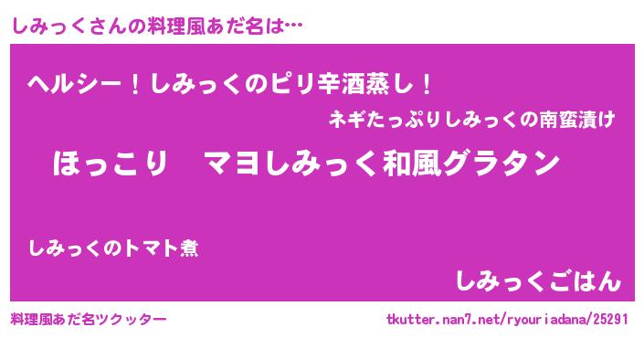 | 男性向けラノベタイトル風あだ名 | 『この素晴らしい世界にしみっくを!』 |