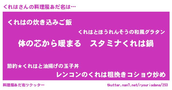 | ヘコむあだ名 | 『つくし』『くれもー』『くれ太郎』 |