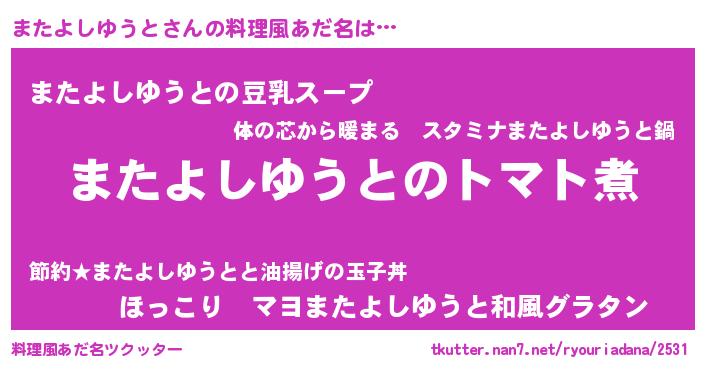 | ポケモン風あだ名 | 『マックウザ』『ヒマタヨシユウト』 |