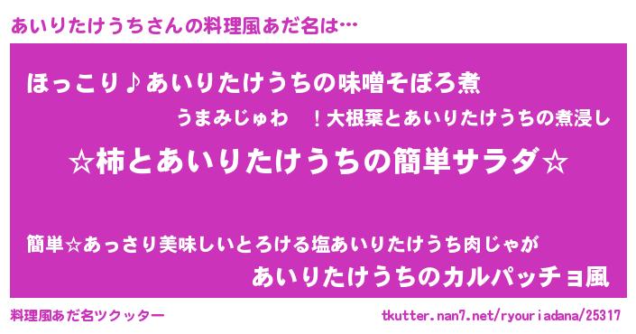 | 胡散臭い通販商品みたいなあだ名 | 『必ず成功するブレスレット…その名も「あいりたけうち」』 |