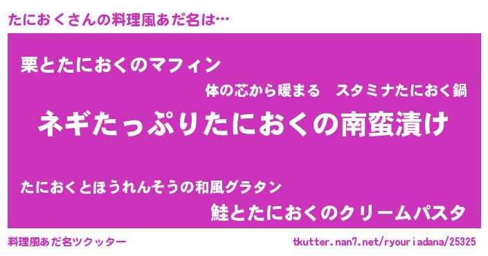 | 胡散臭い通販商品みたいなあだ名 | 『億万長者になれるブレスレット…その名も「たにおく」』 |
