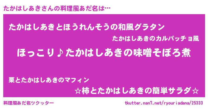 | 肩書あだ名 | 『たかはしあき店長』『たかはしあき大将』 |