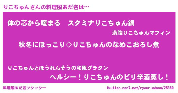 | ヘコむあだ名 | 『レバニラ』『りこちゅん(遠い目)』 |