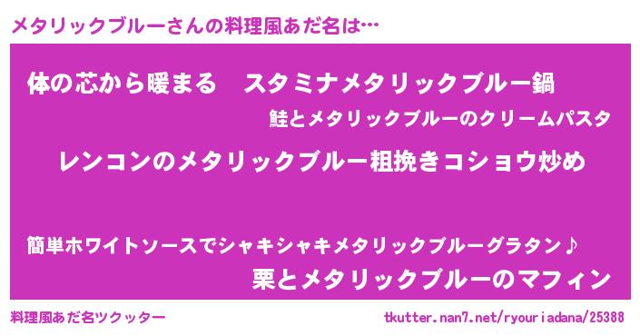 | 女子向けラノベタイトル風あだ名 | 『メタリックブルーなんてお断りですっ。』 |