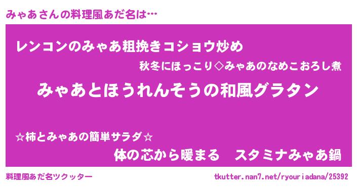 | 胡散臭い通販商品みたいなあだ名 | 『芸能人もオススメする冬虫夏草…その名も「みゃあ」』 |