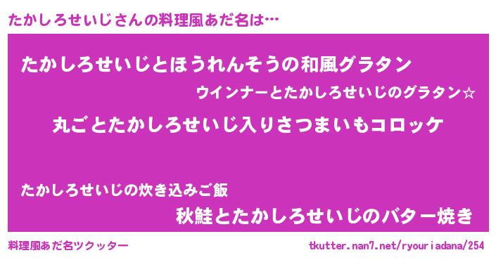 | ヘコむあだ名 | 『たかしろせいじ(遠い目)』『豆乳』 |