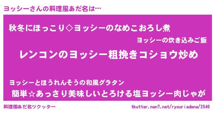 | 意味不明あだ名 | 『自称ヨッシー』『永久保存ヨッシー』 |